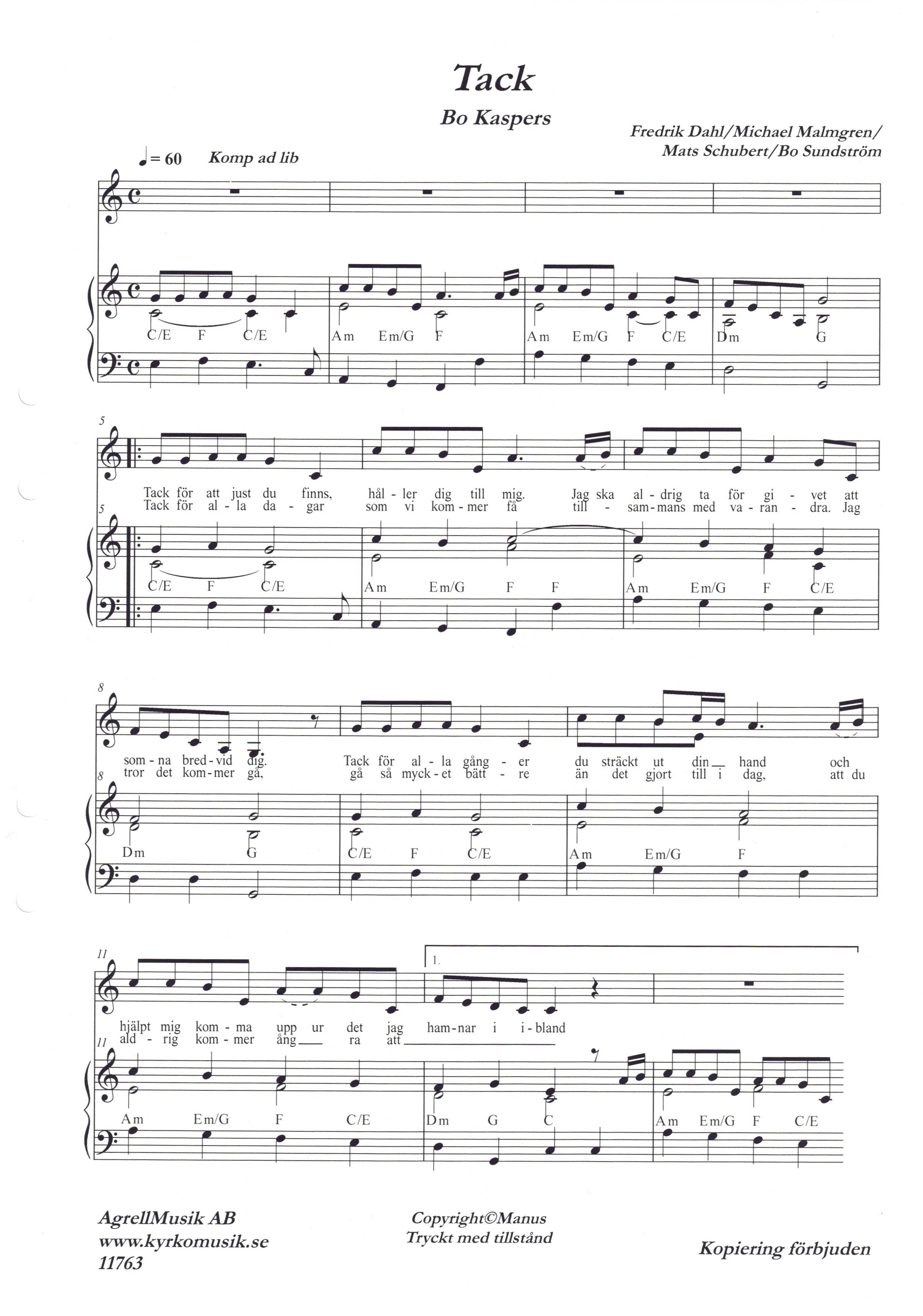 Tack / F Dahl / M Malmgren / M Schubert / B Sundström